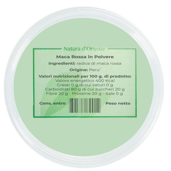 This type of maca, compared to the yellow or black one, is the one that contains the highest level of amino acids. It is known for its tonic properties, able to increase energy and reinvigorate the body, counteracting stress and fatigue. It represents a source of valuable nutrients from this point of view, for metabolic support and energy levels. Red maca is rich not only in amino acids but in protein, iron, B vitamins and other nutrients. In addition, it is an optimal variety from an antioxidant point of view. It has adaptogenic properties, able to help the body counteract states of stress and fatigue. It enhances the vital adaptation mechanisms of our body. It favors an energy and hormonal balance, and is considered a metabolic support food. It supplies nutrients and other substances necessary for the body's metabolism, i.e. it facilitates the correct vital chemical processes that take place inside the body. Acting as a tonic, red maca counteracts physical and mental tiredness, and for this reason it is a root known for its invigorating action. It is useful for toning the body for athletic purposes or for improving male sexual performance, as it is known as or "Peruvian ginseng". Facilitates athletic performance as a natural energizing supplement, acting in a tonic sense on resistance and as an antioxidant - in the long term it acts against oxidative stress. To increase muscle strength and endurance, red maca is the ideal choice. Powdered red maca helps overcome moments of both physical and mental tiredness, and represents a natural resource for concentration, memory and attention. It is historically used as a natural support in case of erectile difficulty and low sexual desire, having an invigorating function. Acts as a vasodilator (widening of blood vessels), which increases blood flow through the action of certain compounds. For women, red maca can promote well-being during the premenstrual and menopausal phase, supporting mood, energy levels and stamina. Some studies have been carried out on Peruvian maca, on the ability to balance hormones on pre- and post-menopausal women. This version of red maca powder, grown at high altitudes, comes from farming; ensures a natural food, free from toxic or harmful substances.