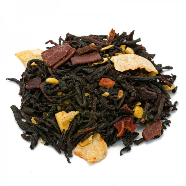 Suitable as an energizing morning tea, it's also ideal for afternoon relaxation. Its taste evokes a sophisticated atmosphere and awakens the senses with its intoxicating scent. The aroma of this flavored black tea will fill the room with its exotic fragrance, lingering long in your memory. Try it with a splash of milk for an extra surprise.