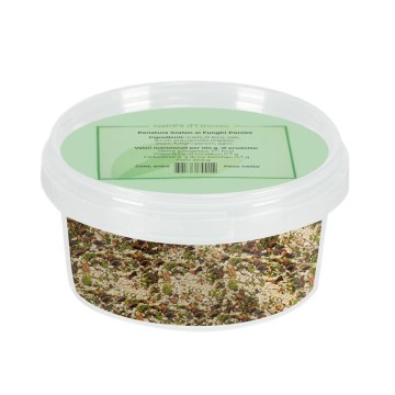 A breading preparation that tastes of the forest thanks to the addition of porcini mushrooms to the breadcrumbs. In addition to the intense aftertaste given by the porcini mushrooms, the flavors of this gratin breading are enhanced by strong spices such as pepper.