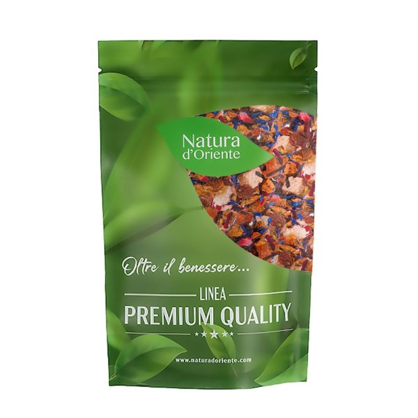 It is an excellent infusion for people with digestive problems, who wish to improve intestinal transit with a tasty drink. Furthermore, the properties of pineapple are notoriously diuretic, facilitating the expulsion of excess fluids - a help for those suffering from water retention. The peach element adds minerals such as calcium and potassium, which come from the peach for a remineralizing and restorative effect. The peach and melon infusion shows a good presence of group B vitamins (especially in melon), vitamin A and vitamin C (rosehip, hibiscus, pineapple, peach, papaya), useful for well-being of our organism.