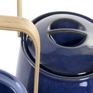 Red cast iron teapot with golden features equipped with stainless steel filter and rope-covered handle, perfect for preparing a good leaf tea and keeping it warm for a long time.