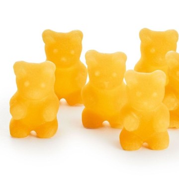 Orange and Grapefruit Bears: sugar, glucose syrup, gelatin, water, acidifier: citric acid, natural flavourings, white tea extract, plant extracts (safflower, red radish, elderberry), glazing agent: carnauba wax.