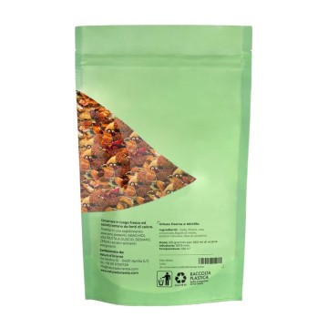 The beneficial antioxidant elements are important in this blend, which contains vitamin C, A and group B. Other interesting phytochemicals are tannins, antioxidants flavonoids and anthocyanins, carotenoids. Among the minerals we find potassium, calcium, phosphorus, and other elements such as amino acids, organic acids and tannins. How to use the ingredients in the infusion The infusion is obtained by placing approximately 3-5 grams of the cream and blueberry mixture with water at 100 °C in a cup (250 ml). Leave to infuse for 10 to 12 minutes before drinking. Add honey or sugar, if desired.