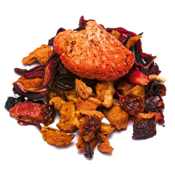 The nutrients in the blend are known for their well-being properties, as both strawberry and hibiscus are rich in vitamin C and other antioxidants. Elderberry is also known, among other things, for its feel-good properties for the immune system. An elderberry infusion also helps the respiratory tract. The natural composition of the blend gives, through strawberries and elderberries, an excellent antioxidant effect, an ally to face the winter cold and soreness. The hibiscus, the apple and the orange peel favor digestion, with an effect that starts from the correct intestinal transit to continue with the diuretic qualities. Strawberry and elderberry, in fact, have properties useful for promoting diuresis and the expulsion of excess liquids. The purifying action becomes useful against water retention and to expel toxins. A "creamy" strawberry infusion, therefore, which simultaneously helps not weigh down the body, and nourishes with natural sugars.