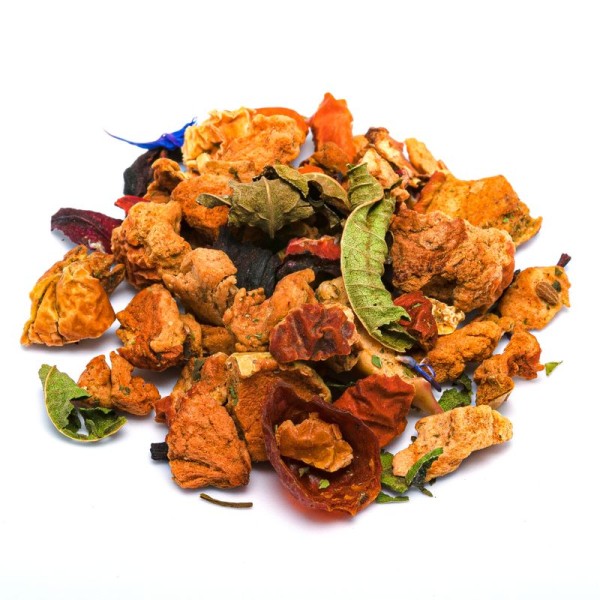 An infusion with intense flavors of fruit and vegetables, with a citrus note and a floral finish. The unique flavor of this blend enhances the element of spearmint, giving a pungent and unusual touch. Mint increases the antioxidant intake of other elements such as hibiscus and goji berries. An infusion that gives strength, refreshes and protects digestion: the perfect drink to drink after meals. It can be tasted at any time of the day, and is an excellent thirst-quenching infusion if served cold in summer.
