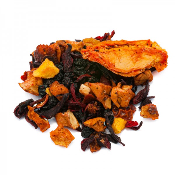 Two well-known tropical fruits, typically exotic, are combined with other ingredients in a selected combination in the fruit infusion. The mango flakes and maracuja, passion fruit create a pleasant surprise on the palate! The sweet note of mango gives a fruity, delicious, acidic and fragrant flavour; while maracuja or passion fruit gives a fresh, slightly sour and substantial note. The appetizing flavor nuances of hibiscus, dog rose and elderberries are sweetened and balanced by apple and papaya, for a decidedly harmonious and tasty combination. Among exotic fruit infusions, this combination is a true classic, much appreciated even by the little ones for its sweetness.