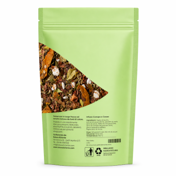 This combination of ingredients is not so common; you can find it on our website Natura d'Oriente, specializing in the online sale of teas, infusions, and herbal teas. The hemp and cocoa blend is available in loose form, weighing 50 g, 100 g, 150 g, or 300 g, stored in freshness-preserving packaging.