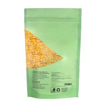 Even in the version of hulled chickpeas , in which the peel is removed, in favor of digestibility, the sweet but decisive flavor of the chickpeas is maintained. The supply of vitamins and mineral salts remains excellent, while only the fibers are slightly reduced by decortication. On the other hand, the fewer fibers of the hulling increase the proteins, for the same weight of the chickpeas.