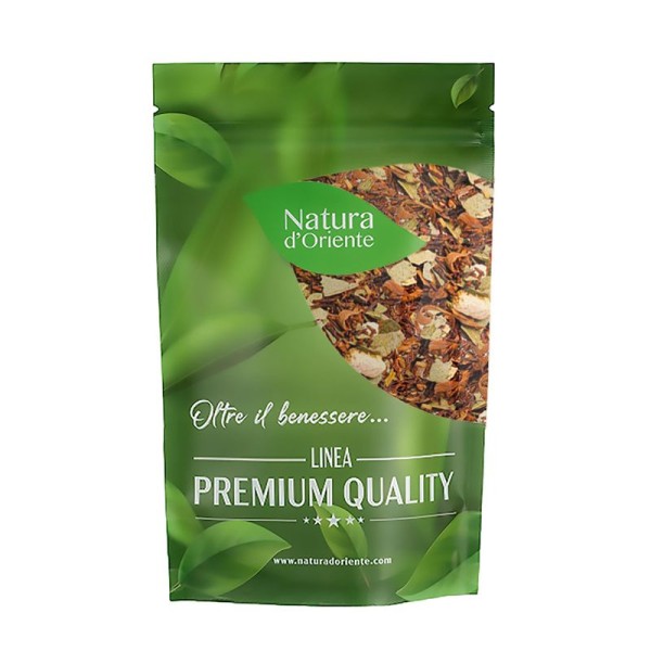 The Rooibos orange and eucalyptus herbal tea thanks to the particularly refreshing taste given by the eucalyptus, seems like a flavored rooibos particularly suitable to be consumed cold, on the other hand considering the vitamin C content of the orange and the balsamic properties of the eucalyptus it also seems like a herbal tea made especially for the ailments of the winter months.