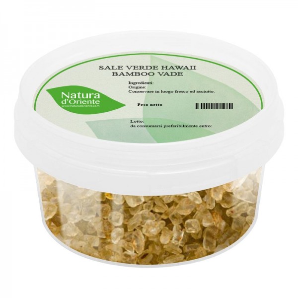 It is a salt of completely natural origin, extracted only in the archipelago of Hawaii, where there are particular salt flats. Thanks to the presence of volcanoes and their activities, the salt has changed and crystallized, so as to include mineral characteristics and other elements in the crystals. In particular, it comes from the island of Moloka? I, where it is obtained by evaporation, and with the union of the extracts of the bamboo leaves, in the drying phase. Among the varieties of cooking salts, Hawaiian green salt is also known as "bamboo vade", perhaps due to a small misunderstanding in the English translation of the terms used by the local natives when they spoke of this variety of salt. Or it is called "bamboo jade" due to its jade green color. The blend is born with an artisanal process of harvesting the highest quality white Pacific sea salt. The water is evaporated in the locally owned salt basins of the island to obtain the large crystals which are then infused with bamboo leaf extract. This salt that comes from Hawaii reflects a process for cooking salt, not to be confused with the bamboo salt for medicinal use for many centuries created with another process in some Asian countries. In fact, bamboo leaf extract has been valued for thousands of years as a health benefit in southern China and Korea.