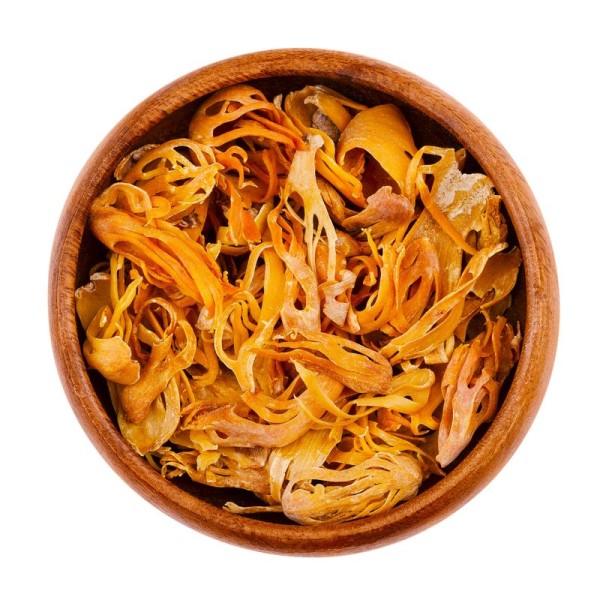 It can be found on the market both as whole dehydrated mace (called nutmeg flower), or reduced to small pieces or powder.
