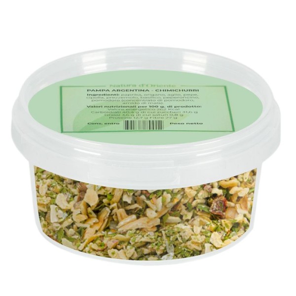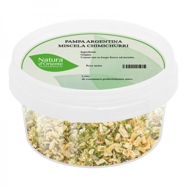You can buy the Chimichurri spice mix through our Pampa Argentina mix offer for sale on Natura d'Oriente. You can find it online at a convenient price, and available in a large quantity for every need: packs of 50 g, 75 g, 100 g, 250 g, 500 g and up to 1 kg.