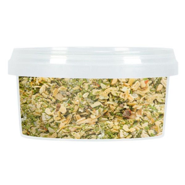 Garlic adds a warm, pungent flavour, with pleasant, bold, savoury notes; as an aromatic ingredient, it makes the mix versatile for use on chicken, beef and other white meats.