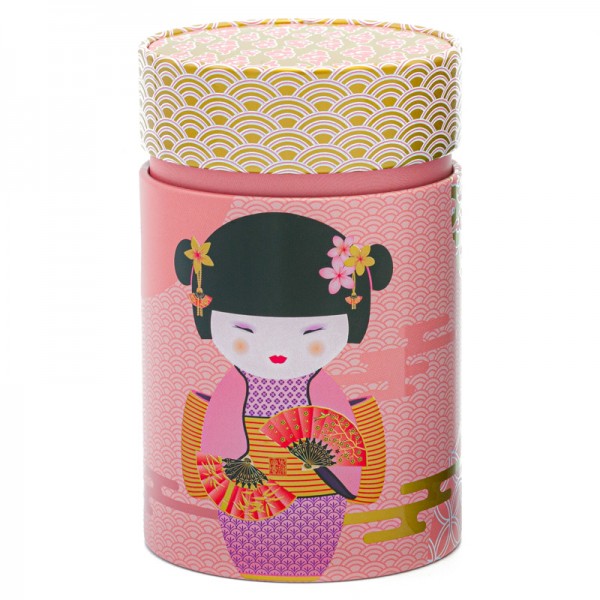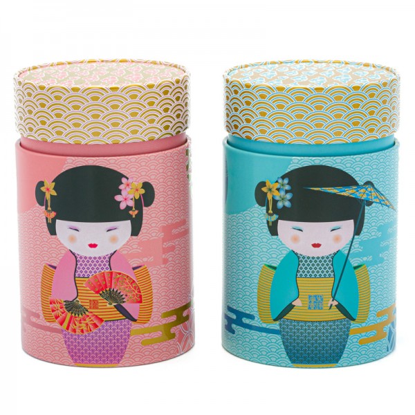 Tin boxes are a resource for order in the kitchen, but they also become a stylish accessory on the shelf, thanks to the colorful and elegant design. This round tea box already shows its beauty with a refined and circular shape. In addition, its oriental-inspired aesthetic gives the depiction of a small and sweet Geisha; the classic courtesan figure, skilled in the ritual of the Japanese tea ceremony. The Geisha is decorated with colored and golden tones, holds two fans and shows cherry blossoms in her hair, as in the traditional vision of the Rising Sun. The round tea container creates a Japanese atmosphere in the kitchen, and becomes precious to the touch thanks to the delicate reliefs on the surface and on the lid. The processing of the tin with matt and special lacquers creates unique effects of softness to the touch. The round tea jars are available with a two-colour coating, pink and light blue, which evoke delicate and oriental-inspired shades.