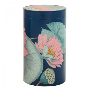 The round tin container keeps tea leaves, dried ingredients for herbal teas and infusions airtight. Thanks to its well resealable lid, it guarantees the integrity of the content and protects it from humidity, heat and air. The floral-inspired design is available in two colours, pink and blue, evoking the typical shades of the world of water lilies, already reproduced in the masterpieces of early twentieth-century painting