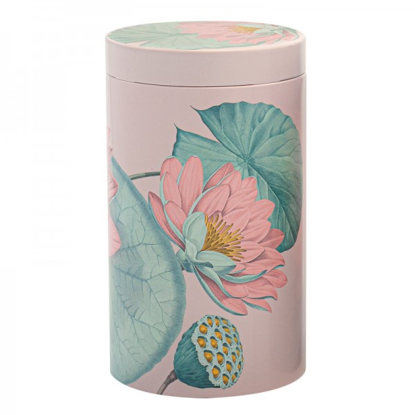 The round tin container keeps tea leaves, dried ingredients for herbal teas and infusions airtight. Thanks to its well resealable lid, it guarantees the integrity of the content and protects it from humidity, heat and air. The floral-inspired design is available in two colours, pink and blue, evoking the typical shades of the world of water lilies, already reproduced in the masterpieces of early twentieth-century painting