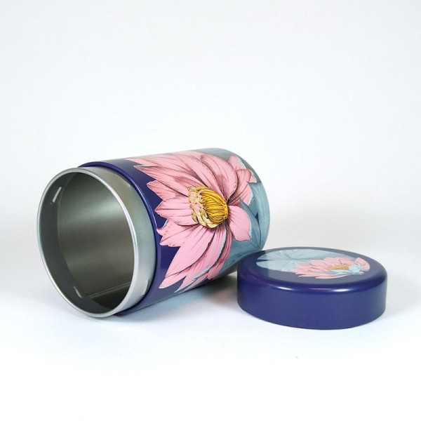 The round tin container keeps tea leaves, dried ingredients for herbal teas and infusions airtight. Thanks to its well resealable lid, it guarantees the integrity of the content and protects it from humidity, heat and air. The floral-inspired design is available in two colours, pink and blue, evoking the typical shades of the world of water lilies, already reproduced in the masterpieces of early twentieth-century painting