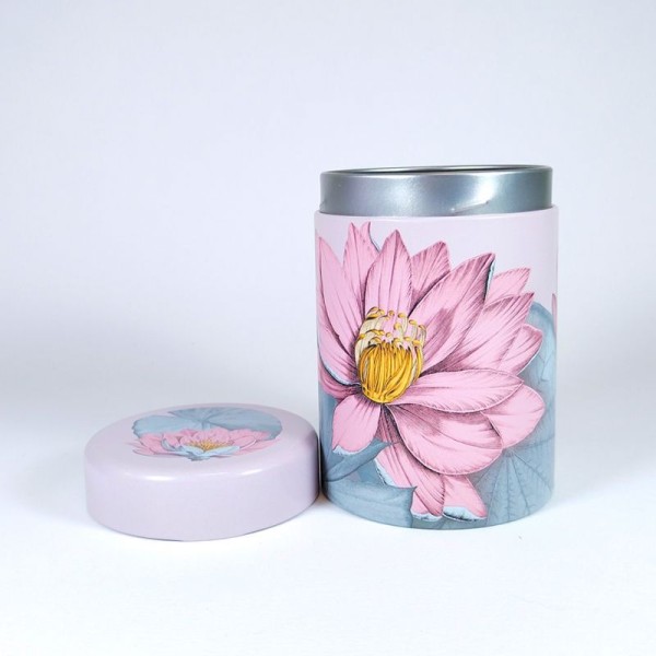 . For those looking for tea canisters with particular patterns, these containers show a symbol of purity and beauty, special and perfect flowers for tea time. This elegant round tea box features patterns on the smooth surface and highlighted edges, which makes the container beautifully detailed.