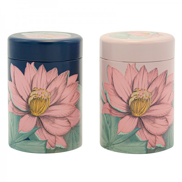The round tin container keeps tea leaves, dried ingredients for herbal teas and infusions airtight. Thanks to its well resealable lid, it guarantees the integrity of the content and protects it from humidity, heat and air. The floral-inspired design is available in two colours, pink and blue, evoking the typical shades of the world of water lilies, already reproduced in the masterpieces of early twentieth-century painting