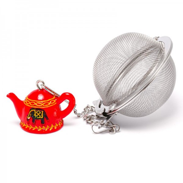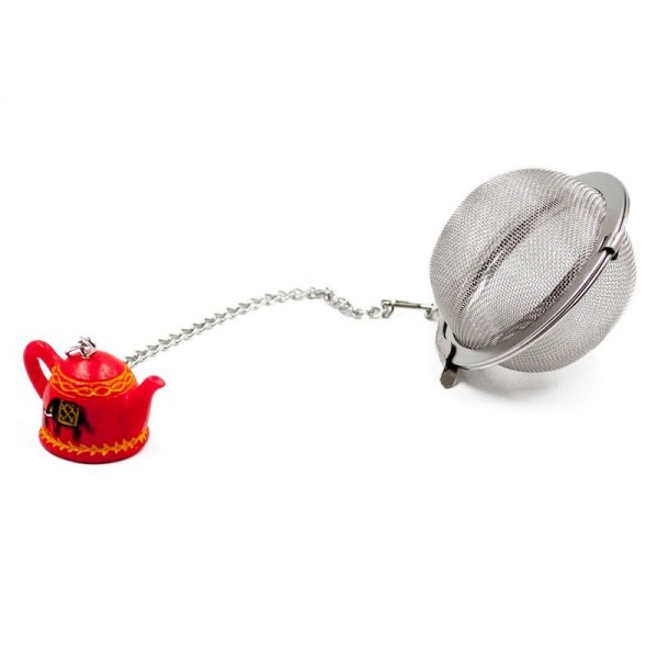 The filter for tea or herbal teas, in this case is made up of a classic ball sieve where you can insert the loose leaves, and a decoration with an original hand painted oriental teapot but no. The stainless steel sphere is practical, like the comfortable chain, while the small sculpture of the teapot represents the creative part of the infuser. It becomes an elegant tea filter, exclusive but simple to use.