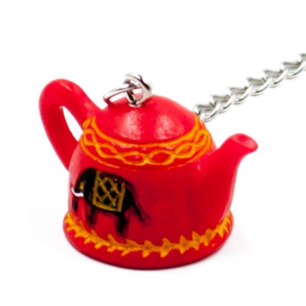 The round filter for infusion and the chain are made of rust-resistant stainless steel (stainless), suitable for food use, solid against scratches and bumps. The spherical "ball" infuser, known for over a century, is ideal for the correct infusion of tea. Its fine-mesh metal screen ensures that loose leaf tea (or other ingredients) does not leak during the brewing process. It opens and closes comfortably in the middle, and from this slit in the middle it allows you to fill the filter container and empty it. The infuser for a cup with the red teapot in the pendant contains the right amount for loose leaf tea, and is also large enough for other herbal teas, infusions and decoctions. The design of the pendant cup infuser The tea filter combines the standard shape of the ball infuser, with a personalized detail such as the red teapot inspired by the Egyptian style. Swinging on the edge of the cup, it recalls the oriental tea ritual. The hook at the end of the diffuser allows the pendant to swing properly, displaying the hand painted teapot. As a gift idea, the tea infuser represents an original gift for any occasion, perfect for lovers of the Middle and Far East, tea and infusions.