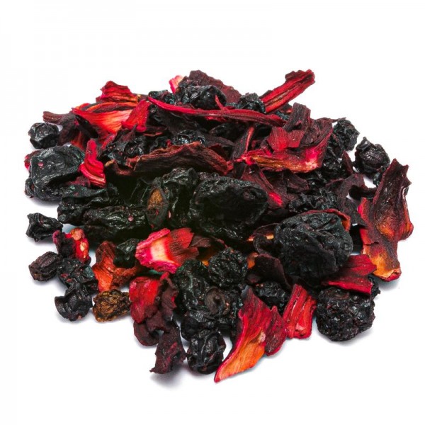 Elderberries, in the infusion blend, are a resource as elements full of antioxidants and vitamins. They can strengthen the immune system, also joining the vitamin C of strawberries and hibiscus.