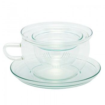 Una tazza in vetro con piattino e filtro in vetro è la quintessenza dell'eleganza per gli amanti degli infusi. Il vetro trasparente permette di ammirare i colori vivaci delle tisane mentre si infondono, aggiungendo un tocco di poesia al momento.