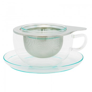 Una tazza in vetro con piattino, filtro in acciaio e coperchio in vetro è il mix perfetto di praticità e stile. Il vetro trasparente esalta i colori naturali delle tisane, mentre il filtro in acciaio assicura un'infusione impeccabile, priva di residui.