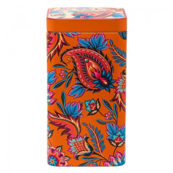 Il barattolo quadrato possiede un rivestimento protettivo che rende questo contenitore da cucina sicuro, sia per il tè sia per altri prodotti secchi. Il design esuberante e pregiato, mostra un'esplosione di fiori, foglie e boccioli allegra e vitale. È disponibile in due tonalità diverse, entrambe vivaci: arancione e bordeaux.