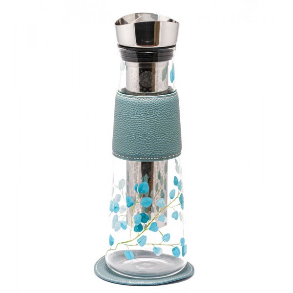 Grazie alla sua capacità (1,25 litri) e dimensione (100 x 300 mm), può portare le bevande in tavola per diverse persone, con uno stile unico. Dal punto di vista del design, la caraffa stupisce per gli splendidi fiori di ciliegio, foglie o eleganti geometrie che decorano l'interno. Si aggiunge la raffinata fascia-polsino sulla superficie, per la presa sicura dal calore, e un elegante sottobicchiere in pelle sintetica coordinato. Perfetta come regalo, la caraffa filtrante con infusore è dotata di una custodia abbinata, ed è disponibile in diversi colori: arancio, viola, celeste.