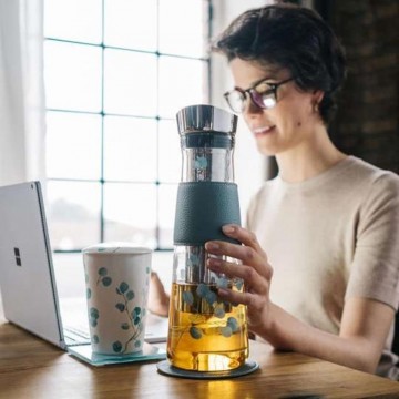 Questo elegante recipiente è stato realizzato con un materiale resistente al calore, come il vetro borosilicato. È una caraffa adatta per contenere e versare liquidi ad alte temperature come tè, infusi e tisane, indispensabile per chi desidera un accessorio impeccabile per le bevande calde. Il sistema della caraffa con infusore, permette di infondere gli ingredienti delle tisane tramite il filtro removibile in acciaio Inox.