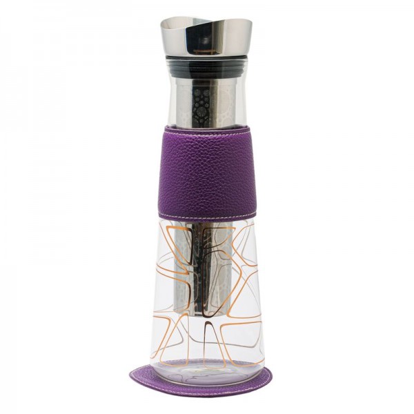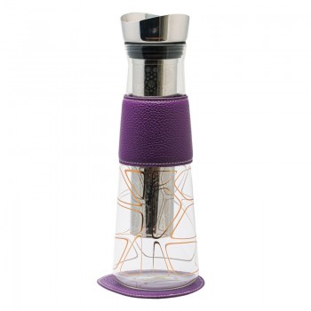 Grazie alla sua capacità (1,25 litri) e dimensione (100 x 300 mm), può portare le bevande in tavola per diverse persone, con uno stile unico. Dal punto di vista del design, la caraffa stupisce per gli splendidi fiori di ciliegio, foglie o eleganti geometrie che decorano l'interno. Si aggiunge la raffinata fascia-polsino sulla superficie, per la presa sicura dal calore, e un elegante sottobicchiere in pelle sintetica coordinato. Perfetta come regalo, la caraffa filtrante con infusore è dotata di una custodia abbinata, ed è disponibile in diversi colori: arancio, viola, celeste.