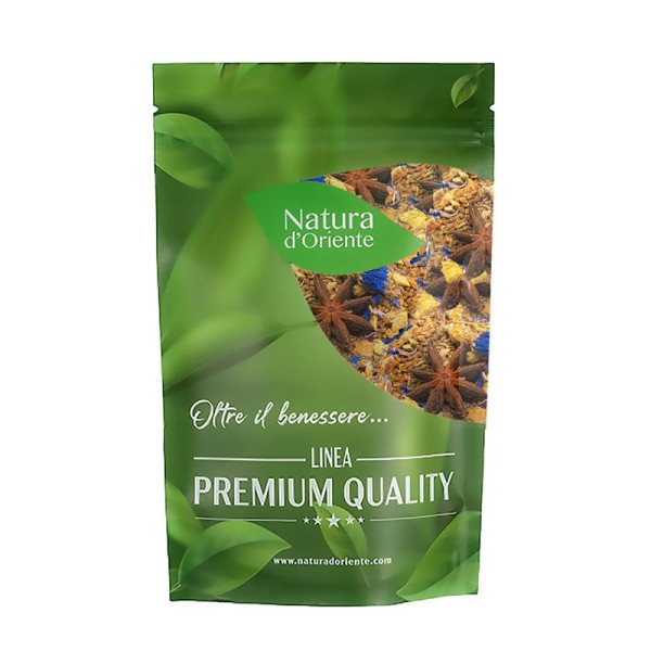 L'anice stellato è una spezia usata in tutto il mondo per il suo sapore vivace, dato che dona un gusto unico, che rende molti cibi estremamente squisiti. Conosciuto anche come anice stellato cinese o badiam, si ottiene dal frutto di una pianta originaria della Cina meridionale e delle aree settentrionali del Vietnam, ma non viene coltivata in altri stati del sud-est asiatico. L'anice stellato è diverso dai semi di anice, anche se i loro sapori sono gli stessi (anche l'anice è presente nel nostro infuso).