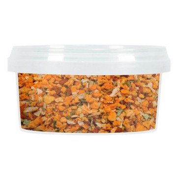 Un preparato per farciture e gratin che ai classici ingredienti delle panature italiane a base di pangrattato, aglio e prezzemolo aggiunge un tocco di esoticità ispirata al Messico, con paprika e peperoncino.