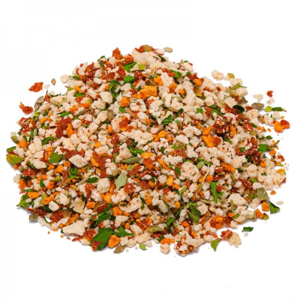 Questo preparato per panatura deve l’aggettivo caprese nel suo nome alla presenza del pomodoro e del prezzemolo, a questi si aggiungono la curcuma e la paprika, ingredienti ormai di casa nella nostra cucina che aggiungono un pizzico di esoticità e di piccantezza.