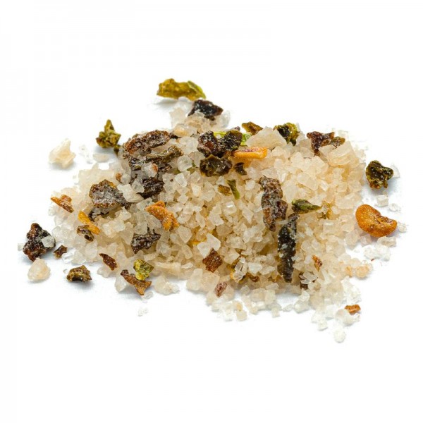 Il fleur de sel è una bellissima e delicata atmosfera della natura. L'altro ingrediente è il chipotle, un peperoncino jalapeño che viene essiccato e affumicato – un tempo a cielo aperto e per diversi giorni. Deriva dalla pianta del Capsicum annuum, e la sua origine secondo alcuni risale addirittura agli Aztechi, che affumicavano carni e peperoncini.