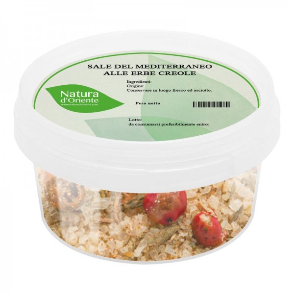 Il sale marino viene essiccato nelle saline, sotto il sole del Mediterraneo, per essere poi raccolto a mano. Si ottiene così un sale naturale, che viene poi miscelato con erbe e sapori diversi. Una tradizione mediterranea che, solitamente riserva al sale una aromatizzazione con erbe tipiche del territorio. Nel caso del sale mediterraneo alle erbe creole, invece, i cristalli vengono amalgamati con un mix di sale, fieno greco, aglio, zenzero, timo, pepe rosa. La storia delle erbe creole nasce con gli europei arrivati in America, che adottarono le pratiche erboristiche di alcune tribù di nativi americani delle vicinanze. Venivano usate delle piante con virtù che si riteneva riducessero febbre, tosse e dolori, nella medicina popolare dei nativi. Queste abitudini di condimento divennero parte della cultura creola, anche in cucina. Il termine creolo unisce persone di diversa provenienza, che venivano così definite quando avevano origini miste (africane, francesi, spagnole, italiane, tedesche, dei nativi americani, etc.). Nel sud degli Stati Uniti questa miscela di popolazioni era frequente, e le tradizioni creole rivelano numerose radici culturali.
