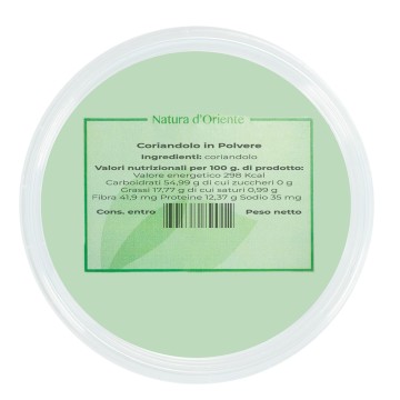 La polvere deriva dai semi essiccati e macinati, molto noti per il loro profumo delicato. Dona un grande aroma e un sapore tra il dolce e l'agrumato, con note più terrose e meno pungenti rispetto alle foglie. Molto utilizzato come condimento tipico della cucina asiatica, indiana e mediorientale, il coriandolo in polvere inserisce profumi particolari, che ricordano quelli dell'aneto, del cumino e del finocchio. Questa versione macinata è pratica da usare in cucina, e spesso viene abbinata ad altre spezie per diverse ricette. Si inserisce la polvere direttamente nella preparazione, evitando la tostatura dei semi.