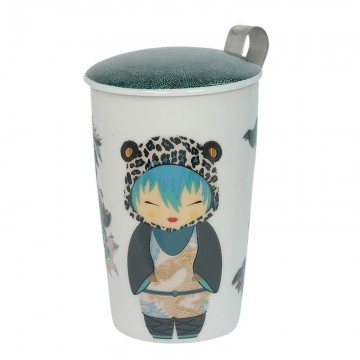 La mug combina un design veramente unico con la praticità di una tazza in porcellana a doppia parete. Questo dettaglio costruttivo la rende una tazza termica, e permette di mantenerla piacevolmente tiepida e maneggevole all'esterno, mentre rimane calda all'interno. Un sistema che consente al tè o alla tisana di preservarsi più a lungo negli aromi e nel sapore, grazie al calore che rimane trattenuto. Questo accade anche grazie al coperchio in porcellana annesso, che migliora l'isolamento termico della bevanda una volta richiuso. La tazza da tè con filtro inossidabile Un vantaggio di questa mug è quello di possedere un colino inserito all'interno, perfetto per la preparazione delle foglie sfuse o degli ingredienti di una tisana. Il filtro in acciaio Inox presenta un manico con impugnatura, veramente comodo per la rimozione del colino. Inoltre il coperchio funge come superficie di appoggio per il colino stesso una volta rimosso. L'acciaio inossidabile è sicuro a livello alimentare, e pratico per l'infusione, oltre ad essere finemente decorato. La forma del filtro a cestello aiuta a preparare il tè o la tisana direttamente nella tazza, con la sicurezza di una foratura stretta per gli elementi più piccoli.