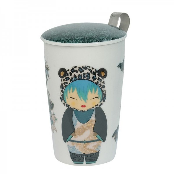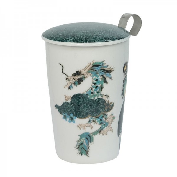 Il motivo “fiabesco” di queste tazze in porcellana, comprende una combinazione tra personaggio umano e animale, che evoca uno stile orientale fantasioso. La decorazione presenta uno sfondo bianco, in cui si inseriscono decorazioni di dolci personaggi che indossano pelli animali, in una dimensione immaginaria e delicata al tempo stesso. Si possono scegliere sia tazze in porcellana con la tonalità rosa e la decorazione vegetale rigogliosa, sia con un colore verde chiaro e la tematica asiatica del dragone.
