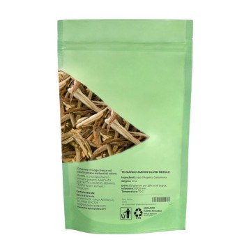 Grazie al modo naturale in cui vengono prodotti, i tè bianchi contengono una buona quantità di composti antiossidanti e polifenoli, utili al nostro benessere. La lavorazione delle foglie ridotta, permette di conservare il maggior numero di antiossidanti, rispetto ad altri tè, tra cui catechine, flavonoidi e tannini. Queste molecole agiscono nell'organismo, aiutandolo a proteggere le cellule dai danni provocati dai radicali liberi; contrastando i processi di invecchiamento e supportando il sistema immunitario. A livello digestivo questo tè asseconda la normale funzionalità intestinale e lo sviluppo di batteri sani nell'intestino, utili particolarmente dopo un pasto pesante. Il tè bianco favorisce l'equilibrio del peso corporeo grazie i polifenoli, durante la combustione dei grassi, e alla caffeina che stimola il metabolismo. Inoltre, per migliorare la silhouette, facilita la diuresi e il drenaggio dei liquidi in eccesso, utile contro la ritenzione idrica e la sensazione di gonfiore. Sempre grazie alla sua minima lavorazione, questo tè bianco può rispondere in parte alla domanda “qual è il tè con meno teina?” il contenuto di caffeina / teina basso del Jasmine Silver Needle, permette di gustarlo a diverse ore del giorno. In ogni caso, la presenza di maggiore o minore caffeina dipende dal tipo di infusione (tempo, quantità) e di regola il tè in foglie va infuso per un tempo breve per ridurre il rilascio di caffeina. Il tè bianco Jasmin Silver Needle può aiutare come tonico e per il buonumore, anche grazie al suo profumo antistress naturale, ma senza gli effetti eccitanti del caffè. L'aroma di gelsomino rilassa, favorendo calma e concentrazione utili per gustare un tè nei momenti di meditazione e relax.