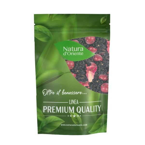 Questa sua azione che facilita una dieta sana ed equilibrata, è potenziata anche dall'effetto “saziante” della miscela di tè nero melograno e mirtillo, che con la sua dolcezza naturale può aiutare a contrastare lo stimolo della fame. Valori nutrizionali del Tè nero Il tè nero contiene potenti gruppi di polifenoli tra cui l'epigallocatechina gallato, le teaflavine, le tearubigine, e diverse altre catechine o flavonoidi antiossidanti. Rende disponibili nutrienti come alcune vitamine del gruppo B, minerali (fluoro, calcio, zinco, magnesio e potassio), tannini e aminoacidi, tra cui la L-teanina. Inoltre, contiene alcaloidi che comprendono la caffeina (teina), la teobromina e la teofillina. Tè nero melograno e mirtillo dove comprarlo Questa combinazione particolare di tè, frutti e fiori, la trovi nel nostro negozio di vendita tè online Natura d'Oriente. Selezioniamo le foglie sfuse e gli altri ingredienti aromatici, secondo criteri di alta qualità e gusto. Come nel caso di questa miscela di tè nero melograno e mirtillo, che trovi in vendita disponibile in comode confezioni salvafreschezza da 25 g, 50 g, 75g, 100 g, 150 g, 300 g. Come fare l'infuso di tè nero melograno e mirtillo Per preparare questo tè nero inserire in una tazza (250 ml), l'acqua tra i 90 e i 95 °C. Mettete in infusione dai 3 ai 5 grammi della miscela, per un tempo dai 3 ai 5 minuti. Da dove proviene e come si ottiene il tè nero? Come ogni tipo di tè, anche quello scuro o nero, deriva dalla pianta Camellia sinensis. La differenza tra i vari tipi di tè dipende dalla lavorazione delle foglie, e nel caso di quello nero da un procedimento di completa ossidazione, scoperto e attuato successivamente rispetto ad altri tipi di tè. Le origini del tè nero risalgono alla dinastia cinese dei Ming (1368-1644), periodo in cui i produttori iniziarono a sperimentare diversi metodi di lavorazione delle foglie di tè. Uno di questi metodi prevedeva l'ossidazione delle foglie per un periodo di tempo più lungo, che diede origine ad un tè dal colore più scuro e dal sapore più intenso. Divenne noto come hong cha, o "tè rosso" in cinese, a cui è legata anche una leggenda in cui la scoperta avvenne in modo casuale, quando le foglie furono lasciate all'aria e poi affumicate per esigenze imprevedibili. Una volta che si perfezionò il metodo, si misero a punto diverse fasi di produzione del tè nero: appassimento delle foglie appena raccolte, arrotolamento, ossidazione e essiccazione. L'ossidazione è cruciale in quanto definisce il carattere del tè nero, grazie alle reazioni chimiche delle foglie. In presenza di ossigeno gli enzimi contenuti nelle foglie reagiscono con i polifenoli, generando composti che definiscono il colore e il sapore del tè. L'idea di aromatizzare il tè nero con ingredienti floreali o frutti è anch'essa antica, e quando iniziarono i commerci del tè verso l'Occidente, pian piano si cominciarono a creare delle miscele. Fino a quelle moderne, che comprendono combinazioni come il tè nero melograno e mirtillo. Tè nero controindicazioni Sebbene il consumo di tè sia considerato sicuro per gli adulti, alcuni effetti sono da tenere presenti, per il contenuto di caffeina del tè nero. Può risultare problematico per i soggetti sensibili a questo alcaloide, oppure se consumato in dosi eccessive. L'assunzione eccessiva di caffeina può provocare effetti indesiderati quali nausea, nervosismo e difficoltà a prendere sonno, palpitazioni, mal di stomaco, diarrea. Per evitare le reazioni alla caffeina, è utile mantenere l'assunzione di tè nero a livelli moderati (1-2 tazze al giorno).