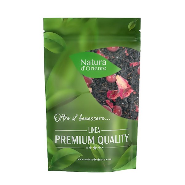 Questa sua azione che facilita una dieta sana ed equilibrata, è potenziata anche dall'effetto “saziante” della miscela di tè nero melograno e mirtillo, che con la sua dolcezza naturale può aiutare a contrastare lo stimolo della fame. Valori nutrizionali del Tè nero Il tè nero contiene potenti gruppi di polifenoli tra cui l'epigallocatechina gallato, le teaflavine, le tearubigine, e diverse altre catechine o flavonoidi antiossidanti. Rende disponibili nutrienti come alcune vitamine del gruppo B, minerali (fluoro, calcio, zinco, magnesio e potassio), tannini e aminoacidi, tra cui la L-teanina. Inoltre, contiene alcaloidi che comprendono la caffeina (teina), la teobromina e la teofillina. Tè nero melograno e mirtillo dove comprarlo Questa combinazione particolare di tè, frutti e fiori, la trovi nel nostro negozio di vendita tè online Natura d'Oriente. Selezioniamo le foglie sfuse e gli altri ingredienti aromatici, secondo criteri di alta qualità e gusto. Come nel caso di questa miscela di tè nero melograno e mirtillo, che trovi in vendita disponibile in comode confezioni salvafreschezza da 25 g, 50 g, 75g, 100 g, 150 g, 300 g. Come fare l'infuso di tè nero melograno e mirtillo Per preparare questo tè nero inserire in una tazza (250 ml), l'acqua tra i 90 e i 95 °C. Mettete in infusione dai 3 ai 5 grammi della miscela, per un tempo dai 3 ai 5 minuti. Da dove proviene e come si ottiene il tè nero? Come ogni tipo di tè, anche quello scuro o nero, deriva dalla pianta Camellia sinensis. La differenza tra i vari tipi di tè dipende dalla lavorazione delle foglie, e nel caso di quello nero da un procedimento di completa ossidazione, scoperto e attuato successivamente rispetto ad altri tipi di tè. Le origini del tè nero risalgono alla dinastia cinese dei Ming (1368-1644), periodo in cui i produttori iniziarono a sperimentare diversi metodi di lavorazione delle foglie di tè. Uno di questi metodi prevedeva l'ossidazione delle foglie per un periodo di tempo più lungo, che diede origine ad un tè dal colore più scuro e dal sapore più intenso. Divenne noto come hong cha, o "tè rosso" in cinese, a cui è legata anche una leggenda in cui la scoperta avvenne in modo casuale, quando le foglie furono lasciate all'aria e poi affumicate per esigenze imprevedibili. Una volta che si perfezionò il metodo, si misero a punto diverse fasi di produzione del tè nero: appassimento delle foglie appena raccolte, arrotolamento, ossidazione e essiccazione. L'ossidazione è cruciale in quanto definisce il carattere del tè nero, grazie alle reazioni chimiche delle foglie. In presenza di ossigeno gli enzimi contenuti nelle foglie reagiscono con i polifenoli, generando composti che definiscono il colore e il sapore del tè. L'idea di aromatizzare il tè nero con ingredienti floreali o frutti è anch'essa antica, e quando iniziarono i commerci del tè verso l'Occidente, pian piano si cominciarono a creare delle miscele. Fino a quelle moderne, che comprendono combinazioni come il tè nero melograno e mirtillo. Tè nero controindicazioni Sebbene il consumo di tè sia considerato sicuro per gli adulti, alcuni effetti sono da tenere presenti, per il contenuto di caffeina del tè nero. Può risultare problematico per i soggetti sensibili a questo alcaloide, oppure se consumato in dosi eccessive. L'assunzione eccessiva di caffeina può provocare effetti indesiderati quali nausea, nervosismo e difficoltà a prendere sonno, palpitazioni, mal di stomaco, diarrea. Per evitare le reazioni alla caffeina, è utile mantenere l'assunzione di tè nero a livelli moderati (1-2 tazze al giorno).
