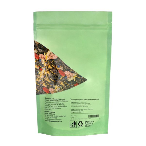 Trovi questa combinazione di tè oolong melograno pesca e bacche nella nostra selezione Natura d'Oriente, tra i tè oolong in vendita online. Proponiamo questo blend di foglie sfuse, frutti e fiori, nelle confezioni salva freschezza da 25 g, 50 g, 100 g, 150 g e 300 g.