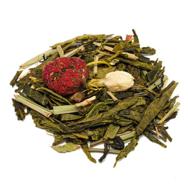 Questo infuso comprende sia il gusto del tè al gelsomino sia del Sencha, arricchendoli con altre componenti benefiche e aromatiche. Un tè verde profumato e morbido, che deriva da un'antica tradizione cinese. Il tè veniva fatto essiccare con i fiori della pianta di gelsomino, per assimilarne la fragranza, e poteva essere un'ottima bevanda per i pasti. In questa versione il tè verde unisce lampone e gelsomino, per creare un connubio ancora più profumato e dolce, esaltato anche da note di citronella, passiflora e foglie di bambù. Comprende anche le Jasmine Dragon Pearls, delle suggestive perle composte da due foglie di tè verde e da una gemma non aperta di gelsomino. Una splendida miscela di frutta e fiori crea un tè verde che rasserena e delizia, freddo o caldo.