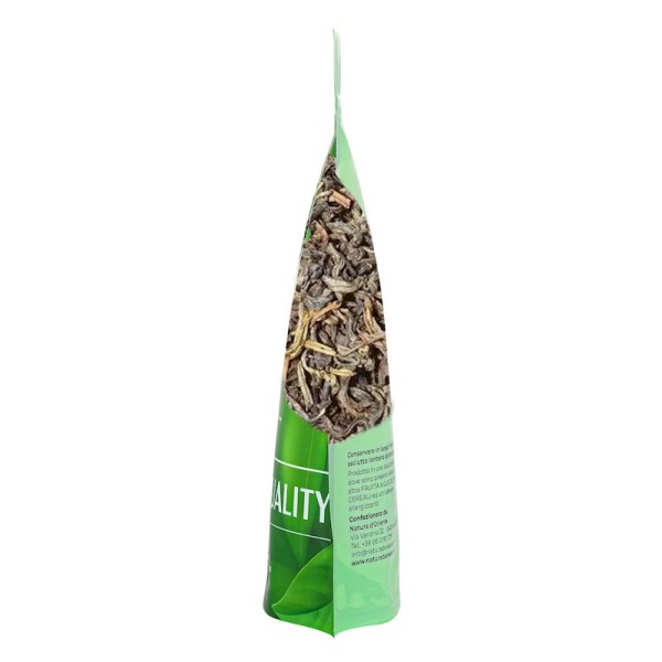 Una bevanda a base di tè verde con zenzero e arancia, che dona un sapore intenso e diverse proprietà. Questo tè aiuta il benessere con gli effetti diuretici, depurativi ed energizzanti; ideale per rimettersi in forma, depurarsi o semplicemente per regalare un gesto salutare al nostro organismo. L'infusione unisce le virtù del tè verde, con quelle dello zenzero e dell'arancia.